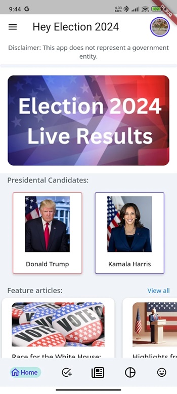 Election 2025’s interface is crafted with user experience in mind. The app opens with a clean, organized home screen that displays trending topics and the latest news. Users can swipe through different sections, including News, Polling, and Candidate Information, making it easy to switch between areas of interest.